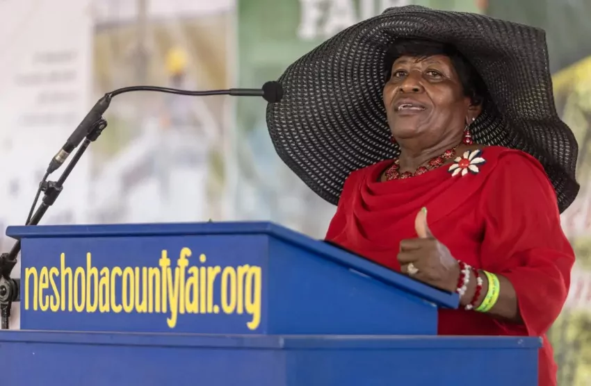 Treasurer David McRae speaks during the 2023 Neshoba County Fair in Philadelphia, Miss., Thursday, July 27, 2023. Credit: Eric Shelton/Mississippi Today