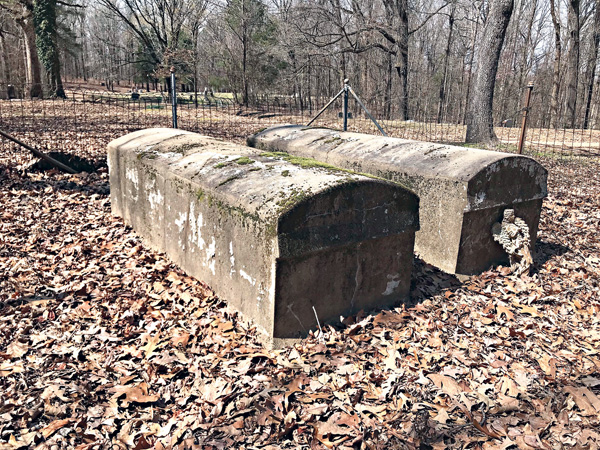 In October 1981, two above-ground concrete burial vaults in the Rocky Branch Cemetery northeast of Charleston were broken into using an ax. Two men were indicted in the crime on felony charges of disturbing a grave.