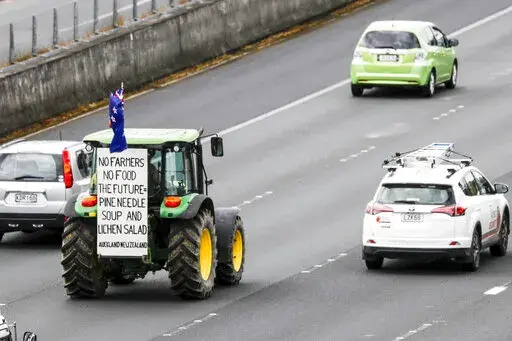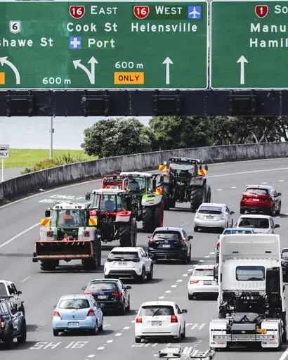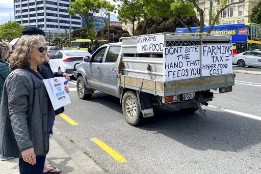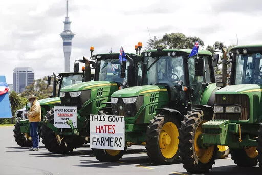 WELLINGTON, New Zealand (AP) — Farmers across New Zealand took to the streets on their tractors Thursday to protest government plans to tax cow burps and other greenhouse gas emissions, although the rallies were smaller than many had expected.