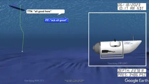 During the submersible’s final dive on June 18, 2023, the crew lost contact after an exchange of texts about Titan’s depth and weight as it descended. The support ship Polar Prince then sent repeated messages asking if Titan could still see the ship on its onboard display.
