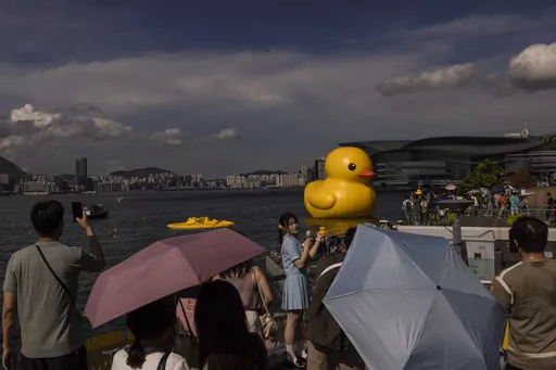 The two 18-meter (59-feet) -tall yellow ducks resemble the bath toys. In 2013, one of Hofman's ducks was displayed in the city and sparked a frenzy. But that duck was also deflated during its exhibition period.