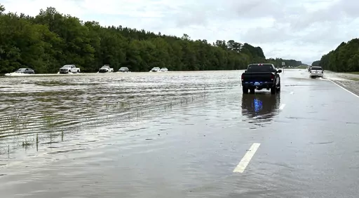 Gov. Tate Reeves said on Facebook that two roads in the area were impassable and that a highway was closed because of about 5 inches (12.7 centimeters) of water on the road. Reeves said the county had requested a boat team, which responded.