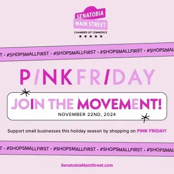 Participating in Nationwide “Pink Friday” Small Business Shopping Experience Senatobia – We are thrilled to announce that Senatobia Main Street will be participating in the fourth annual nationwide Pink Friday small business shopping experience on November 22, 2024.