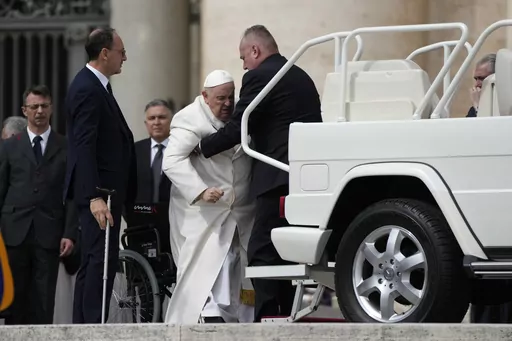 Francis appeared in relatively good form during his regularly scheduled general audience earlier Wednesday, though he grimaced strongly while getting in and out of the “popemobile.” He nevertheless rode around the square as usual, kissing babies and greeting the faithful.