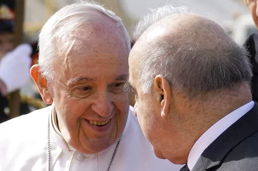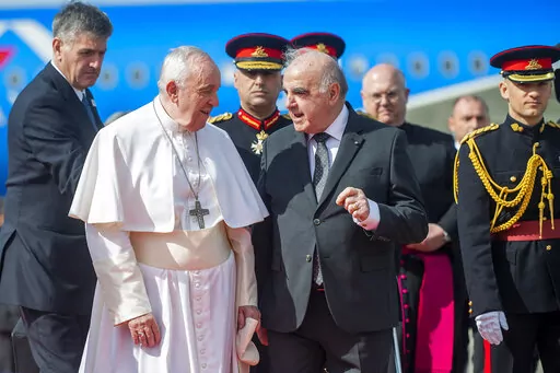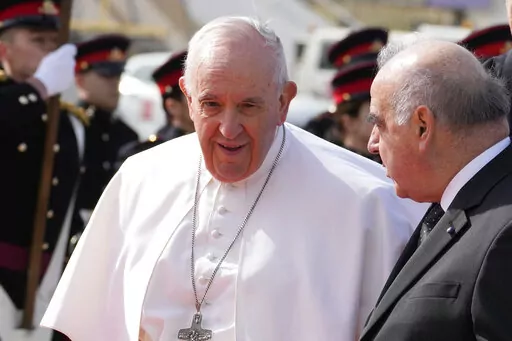 Francis also said the war had pained his heart so much that he sometimes forgets about the pain in his knees. Francis has been suffering for months from a strained ligament in his right knee. The inflammation got so bad that the Vatican arranged for a tarmac elevator to get him on and off the plane for Saturday’s flight to Malta, and his limp was more pronounced Saturday.