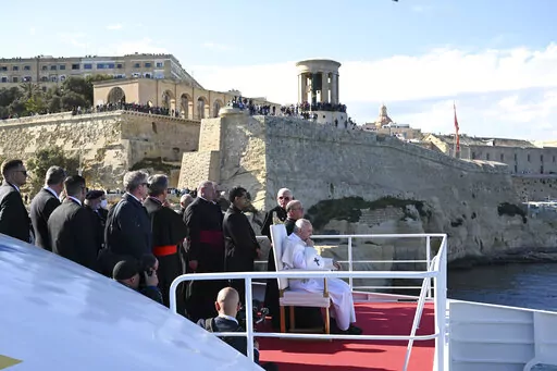 Later Saturday, Francis travelled by catamaran ferry to the island of Gozo, making his own the Mediterranean seafaring tradition to celebrate a prayer meeting at Malta’s national shrine. Flanked by two Maltese churchmen who are key aides at the Vatican, Francis sat on a white chair on deck for the hour-long trip and was welcomed by thundering canons as the ship came in Gozo’s port.