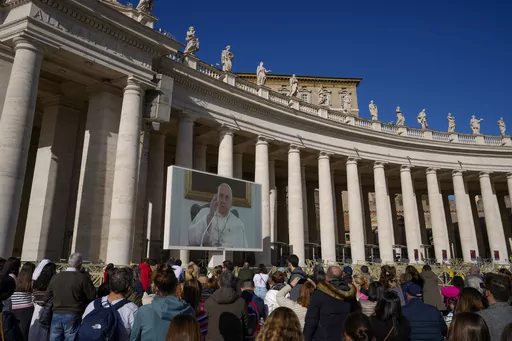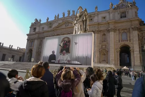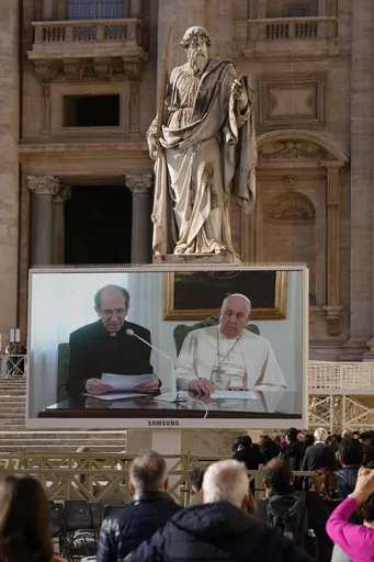 VATICAN CITY (AP) — For a second Sunday, an ailing Pope Francis skipped his popular window appearance to the public in St. Peter’s Square, but in televised remarks said he’s doing better even though his voice wouldn't let him read all his comments aloud.