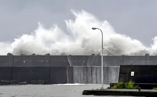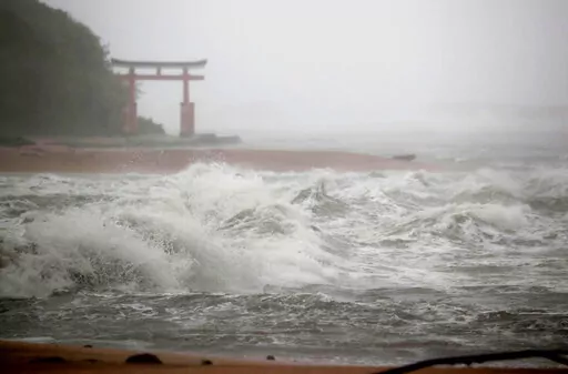 TOKYO (AP) — A powerful typhoon slammed ashore in southern Japan on Sunday as it pounded the region with strong winds and heavy rain, causing blackouts, paralyzing ground and air transportation and prompting the evacuation of thousands of people.