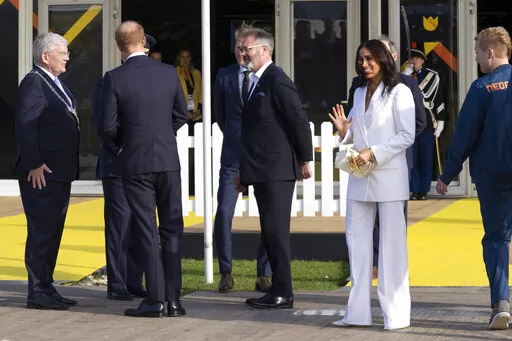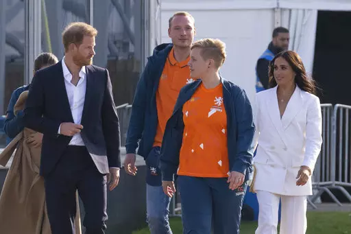 Harry and Meghan got an enthusiastic welcome from cheering competitors at the games site in a park in The Hague. The event opens Saturday and runs through April 22.