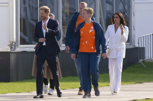 LONDON (AP) — Prince Harry and his wife Meghan on Friday made their first public appearance in Europe since they gave up formal royal roles and moved to the U.S. more than two years ago, greeting competitors at the Invictus Games.