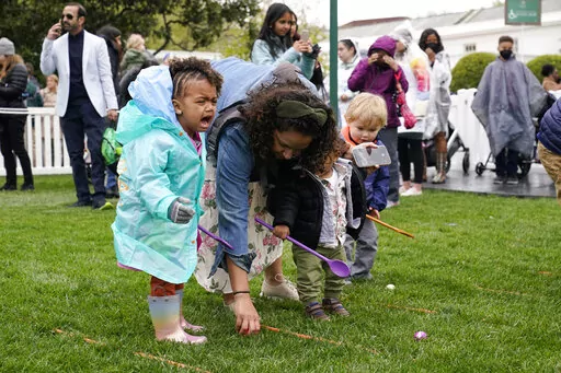 Undaunted by rain, President Joe Biden and his wife, Jill, kicked off the equivalent of a daylong garden party for some 30,000 kids and adults, including celebrities and costumed characters.