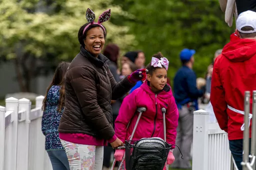 Maya Kennedy, 10, of Portland, Oregon, said she was having a good time at her first White House Easter egg roll despite the weather. She had seen some of the PBS KIDS characters and had heard the first lady speak. The fifth grader said she also wanted to meet Jill Biden.