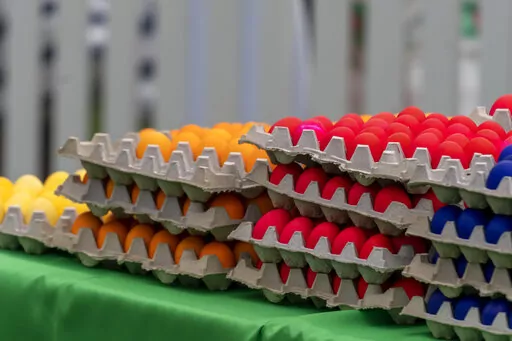 “Ready, set,” Biden said before blowing a whistle to start the competition. He later coached a young egg-roller, saying “Go, You got it!”