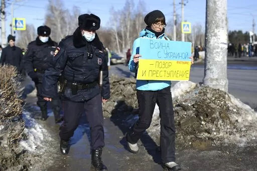 MOSCOW (AP) — From Moscow to Siberia, Russian anti-war activists took to the streets again Sunday to protest Russia’s invasion of Ukraine, despite the arrests of hundreds of protesters each day by police.