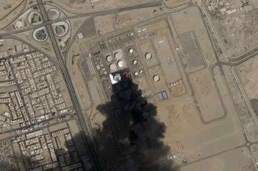 Satellite photos from Planet Labs PBC analyzed by The Associated Press showed one of the two tanks damaged in the Houthi attack on Jiddah still burning late Saturday morning. Bright red flames leapt up from the tank, with thick black smoke rising from the fire.