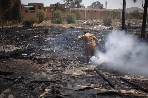 The office shared images it said for the aftermath of the airstrike. It showed wreckage in the courtyard of a social insurance office with the shattered windows of a nearby multiple-story building.