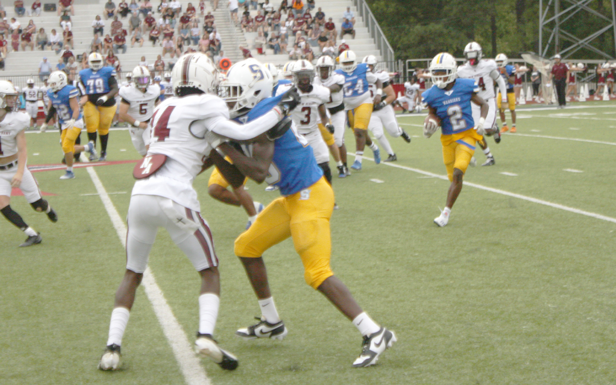 Playing at Bobby Franklin Field on the campus of Northwest Mississippi Community College, while their new football stadium is being renovated, the Warriors wowed the crowd on the opening kickoff when Silas King grabbed the ball and raced 99-yards for the touchdown.