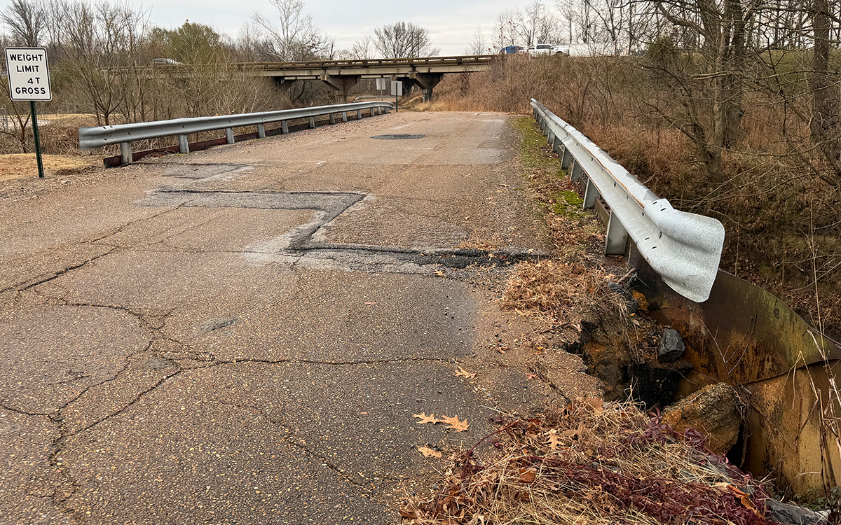 Mayor Greg Graves confirmed the City of Senatobia received a critical finding report Wednesday, Dec. 3 from the Office of State Aid Road Construction (OSARC) stating the Shands Bottom Road bridge that spans over Senatobia Creek near Interstate 55 south of BankFirst Yards Sportsplex has severe erosion issues undermining both ends of the bridge in the vehicle wheel path.
