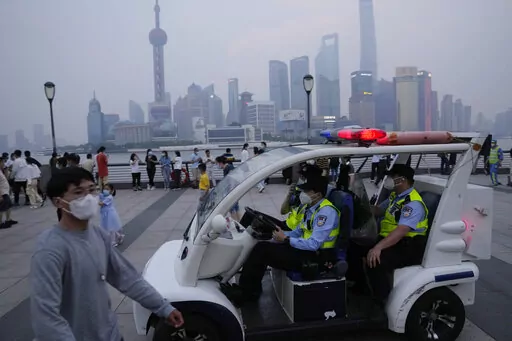 That measure didn’t deter people in Shanghai from gathering outside to eat and drink under the watch of police deployed to discourage large crowds from forming.