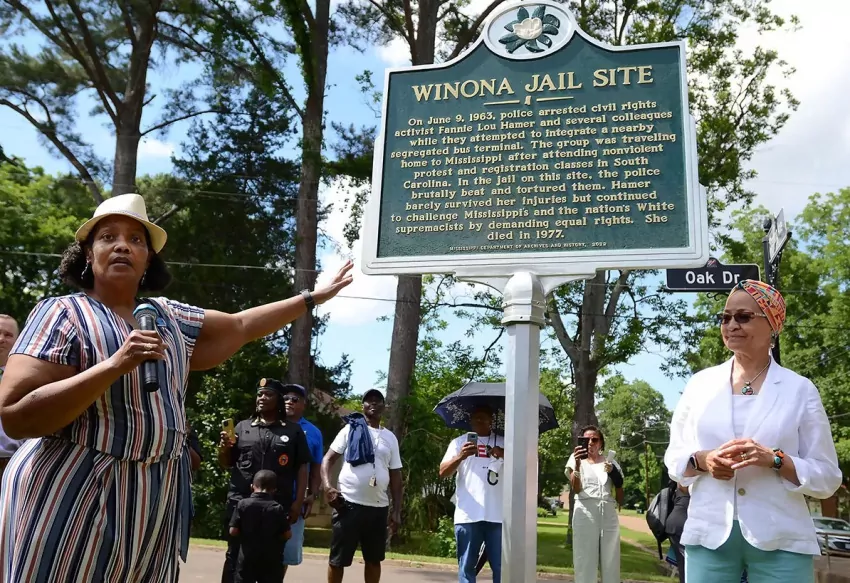 Artists, patrons of the arts and Mississippi Museum of the Arts staff kick off the exhibit, “A Movement in Every Direction: Legacies of the Great Migration,” an homage to the social, economical and cultural impact that resulted from the exodus of millions African Americans from the South to northern states. The exhibit, “A Movement in Every Direction: Legacies of the Great Migration,” opened today at the Mississippi Museum of Art in Jackson, Friday, Apr. 8, 2022. Credit: Vickie D. King/Mississippi Today