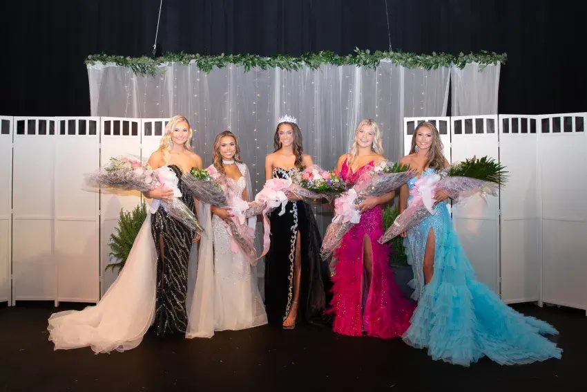 Elizabeth Jenkins, center, was crowned most beautiful Saturday, March 29, at the Magnolia Heights School Beauty Revue. Others placing in the top five were from left: Anna Lauren Davis, Reagan Roberson, Aspen Travis and Hayden Hickson. Photo courtesy of Sycamore Studios/ Megan Boyles