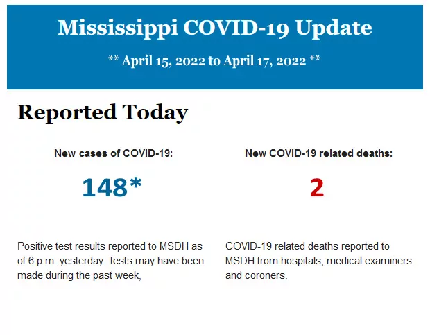 Listed below is the daily COVID-19 update for the state of Mississippi.
