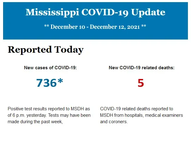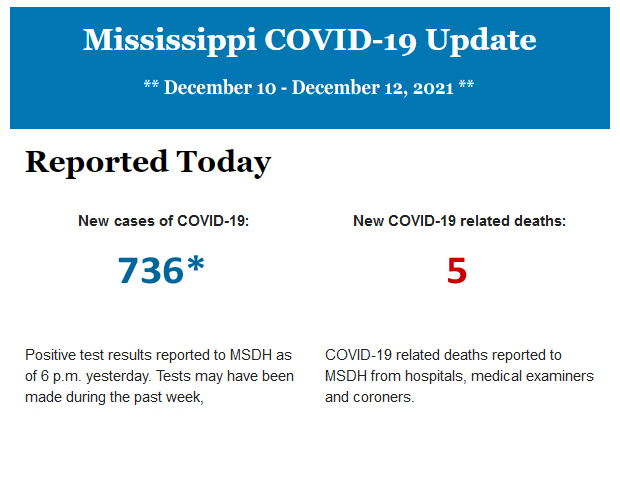 Listed below is the daily COVID-19 update for the state of Mississippi.