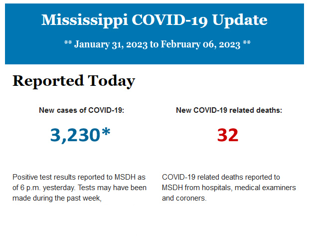 *New COVID-19 positive test results reported to MSDH for January 31 - February 06.