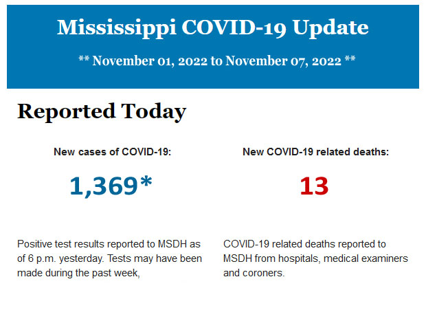 Listed below is the recent COVID-19 update for the state of Mississippi.