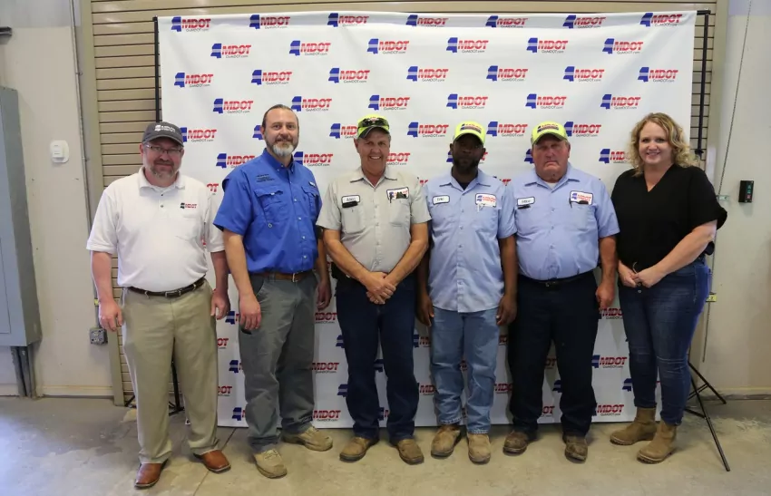 Also pictured in each photo is Brian Ratliff, MDOT Deputy Executive Director; Matt Dugas, District 7 Maintenance Engineer; Janie Bass, District 7 Assistant Maintenance Engineer.