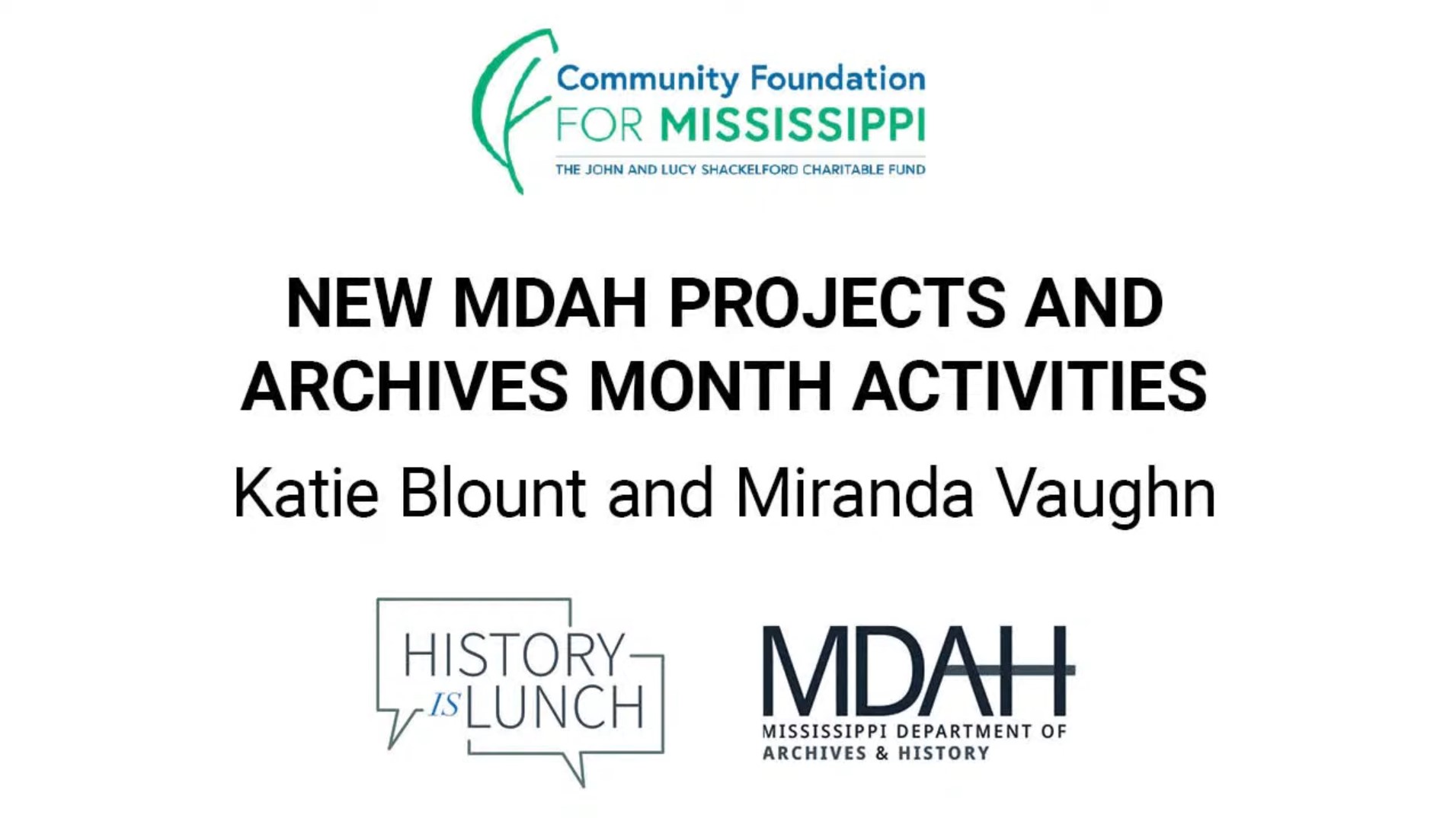 On October 4, 2023, Katie Blount and Miranda Vaughn presented “MDAH Projects and Archives Month Updates” as part of the History Is Lunch series.