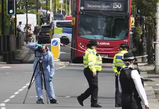 LONDON (AP) — A man wielding a sword attacked members of the public and police officers in a northeast London suburb Tuesday, killing a 14-year-old boy and injuring four other people, British authorities said.