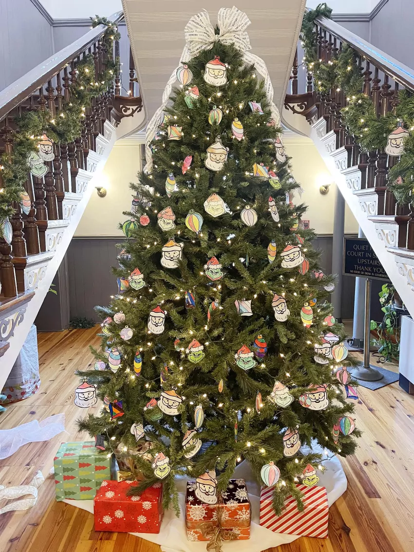 Strayhorn Elementary School provided Christmas decorations for the Tate County Courthouse this year. Ornaments for the tree in the front foyer by the staircase were made by students in kindergarten through third grade while wall decorations, including stockings and trees, were crafted by fourth through sixth grade students.