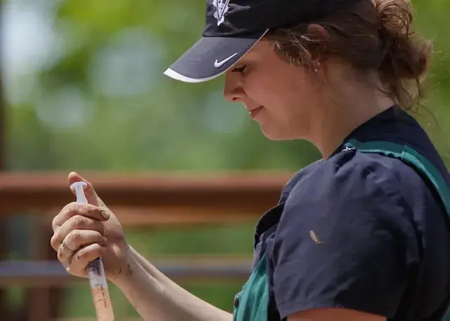 Pike County veterinarian Dr. Kim Klunk is featured in the second season of “On the Farm,” a four-part miniseries that highlights farm-related stress and spotlights resources and organizations that can assist farmers and other agricultural professionals. All four episodes will air as a single, one-hour episode on Mississippi Public Broadcasting’s TV channel July 1 at 9 p.m., July 5 at 7:30 p.m. and July 7 at 4:30 p.m. (Photo by James Parker, MSU TV Center)