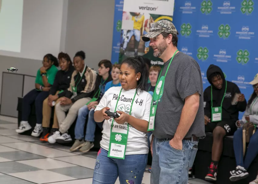 Beau Varner, Mississippi State University Extension Service agent in Attala County, instructs Addison Smith, a Pike County 4-H’er, during a training session in the 4-H Tech Changemakers program. The program enlists 4-H members in Choctaw, Noxubee, Attala, Coahoma, Humphreys, Newton, Pike and Harrison counties to teach digital skills to adults in their communities. (Photo by MSU Extension Service/Michaela Parker)