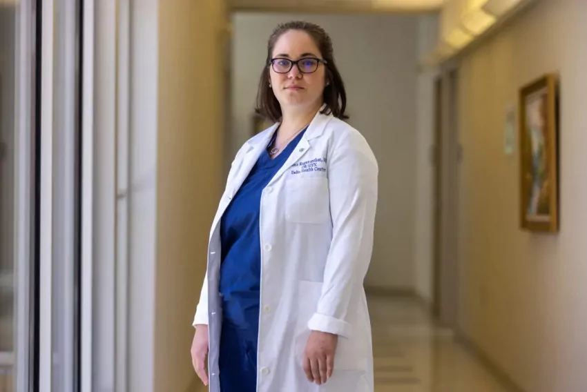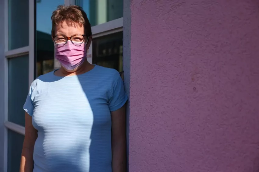 Dr. Cheryl Hamlin poses for a portrait outside of the Jackson Women's Health Organization in Jackson, Miss., Tuesday, June 7, 2022. Dr. Hamlin travels from Massachusetts to Jackson to assist patients seeking abortions. Credit: Eric Shelton/Mississippi Today