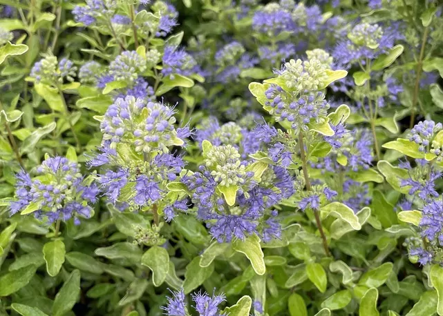 While admiring their beauty, I noticed that bees were equally drawn to these plants. What caught my eye was the Caryopteris plants.