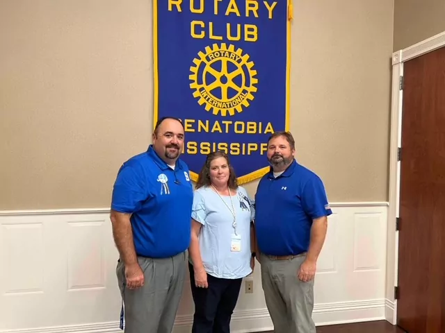 Senatobia Rotary Club welcomed two new members at its regular meeting held Friday, Oct. 6 at Back Acres Country Club. Above, Marc Young, right, and David Herrington, left, are welcomed by Senatobia Rotary Club President Britt Herrin, center.
