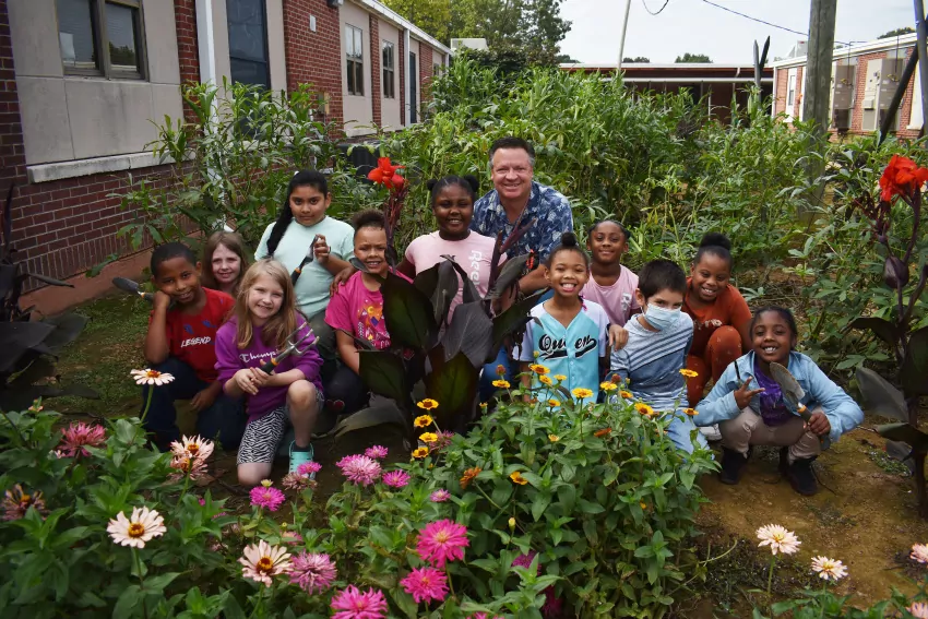 Under the direction of third grade math and science teacher Todd Willis, eight- and nine-year-old students at CES are getting their hands dirty as they grow a school garden and learn fundamentals at the same time.
