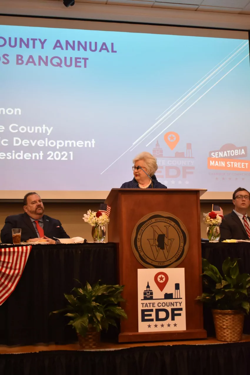 The positivity continued through the evening as attendees also heard from Dr. Michael Heindl, NWCC President; Reverend Michael Garrett, West Looxahoma Church of Christ; Jamie Sowell, Community Development and Main Street Director; Mollie K. Spencer, Senatobia Main Street Chairman; Britt Herrin, TCEDF Executive Director; and Thomas Givens, 2022 TCEDF President.