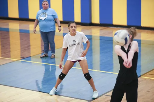 At home, after volleyball practice, Najiah trains with Andrew in the driveway, on a barrel set up with springs and levers to simulate a bull ride. He rides a fine line between coach and dad. If he feels fear, he said, his daughter will, too. So his motto is one of positivity.
