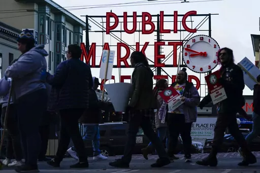 But on Thursday, most strikers were focused on work issues and pay. Moonie Atchley, who works as a mixologist at a Starbucks store in the company's hometown of Seattle, was picketing outside a non-union store near Pike Place Market, where the first Starbucks opened in 1971.