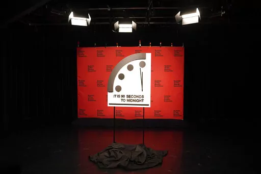 WASHINGTON (AP) — With Russia’s invasion of Ukraine and the specter of nuclear weapon use, Earth crept its closest to Armageddon, a science-oriented advocacy group said, moving its famous “Doomsday Clock” up to just 90 seconds before midnight.