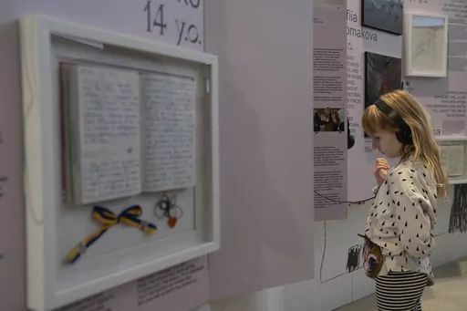 “War Diaries,” includes writings like those that Anne Frank penned in the hidden annex behind an Amsterdam canal-side house, but also modern ways Ukrainian children have recorded and processed the traumatic experience of life during wartime, including photos and video.