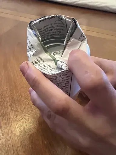 Fold the excess newspaper in at the base of the can, set the wrapped can right-side-up and press it firmly against a flat surface like a table or counter to fortify the bottom of your new pot. If necessary, use a small piece of tape to secure the bottom.