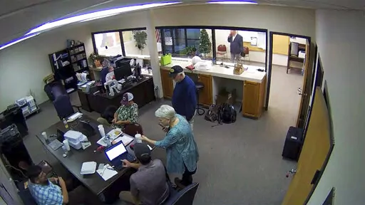 Latham said that she went to her job as a high school teacher and stopped by the election office briefly that afternoon. But the video image shows her arriving at 11:37 a.m., and time stamps on other images show her there throughout much of the day. She also said she didn't see specific people and saw others only briefly, but the video images show otherwise.