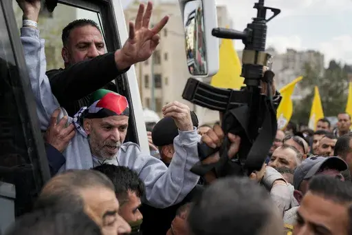 RAMALLAH, West Bank (AP) — Israel on Saturday released a total of 183 Palestinian prisoners in exchange for three Israeli hostages held in Gaza as the ceasefire agreement between Israel and Hamas continued to gain traction after nearly two weeks.