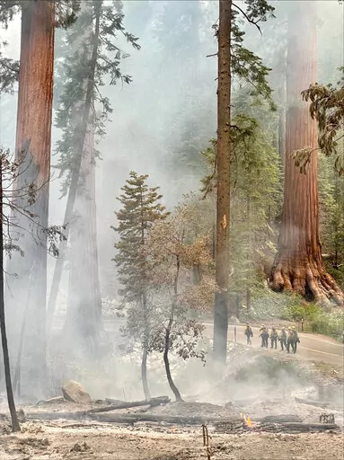 The park has used prescribed burns to clear brush around the sequoias, which helps protect them if flames spread farther into the grove.